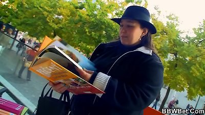 这位金发碧眼的欧元荡妇的公共接送被敲打以获取现金