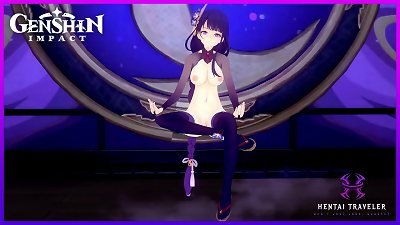 三维超级可爱的中国荡妇有一个铁杆连接,带有厚啄木鸟,卸载了很多